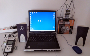 (3) Micrófono ubicado en a 10 cm por encima del nivel del agua en correspondencia de la cabeza del sujeto, conectado a la grabadora que está en control; (4) Luz 5v que se comanda desde Control.